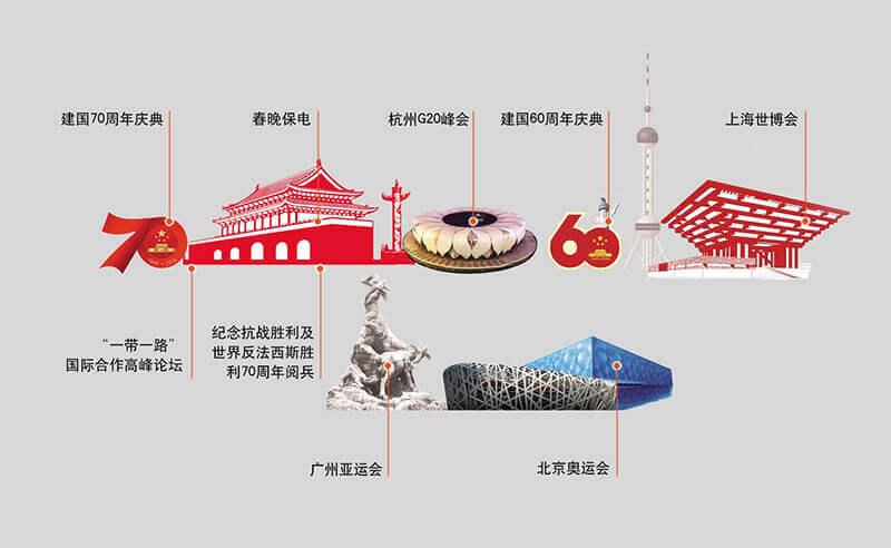 基于安全稳定的系统方案、及时完善的工程服务、灵活周密的现场指挥、专业合作的项目团队,贵州矩典呈像装饰设计工程有限公司成功完成建国70周年国庆庆典、“一带一路”国际合作高峰论坛、春晚保电、杭州G20峰会、建国60周年庆典、上海世博会、广州亚运会、北京奥运会等国家级重大政治活动保电工程,受到了业界一致肯定,贵州矩典呈像装饰设计工程有限公司亦被业界媒体冠以“保电专家”称号。