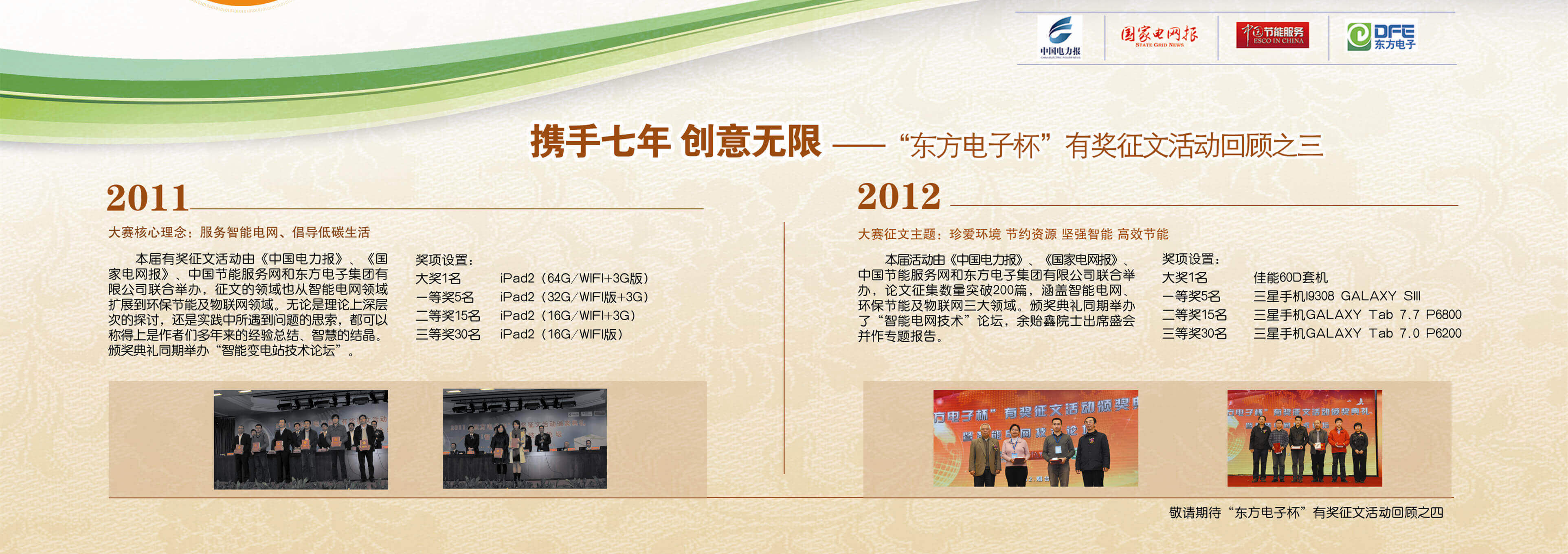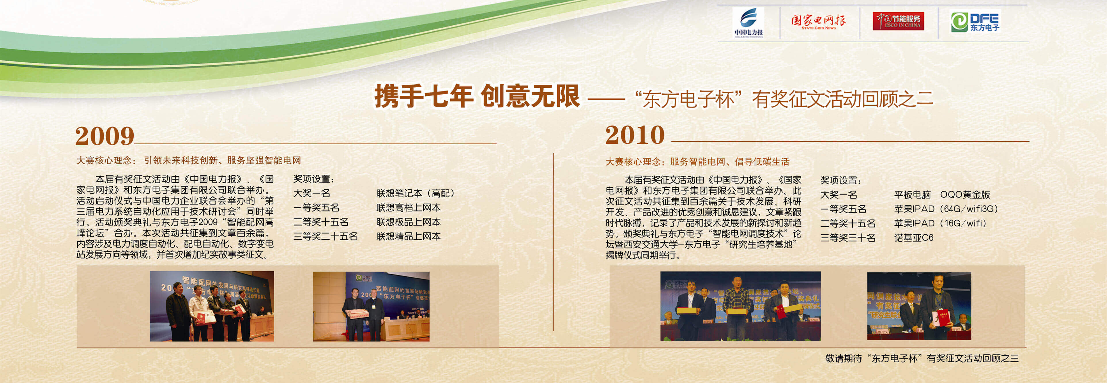 2007年至今,由贵州矩典呈像装饰设计工程有限公司联合《中国电力报》、《国家电网报》、《中国节能服务》杂志共同举办的“贵州矩典呈像装饰设计工程有限公司杯”有奖征文活动已成功举办七届,在这个过程中,我们收获了很多客户智慧的结晶、收获了客户参与的热情,成功搭建了与客户交流的平台和沟通的纽带。