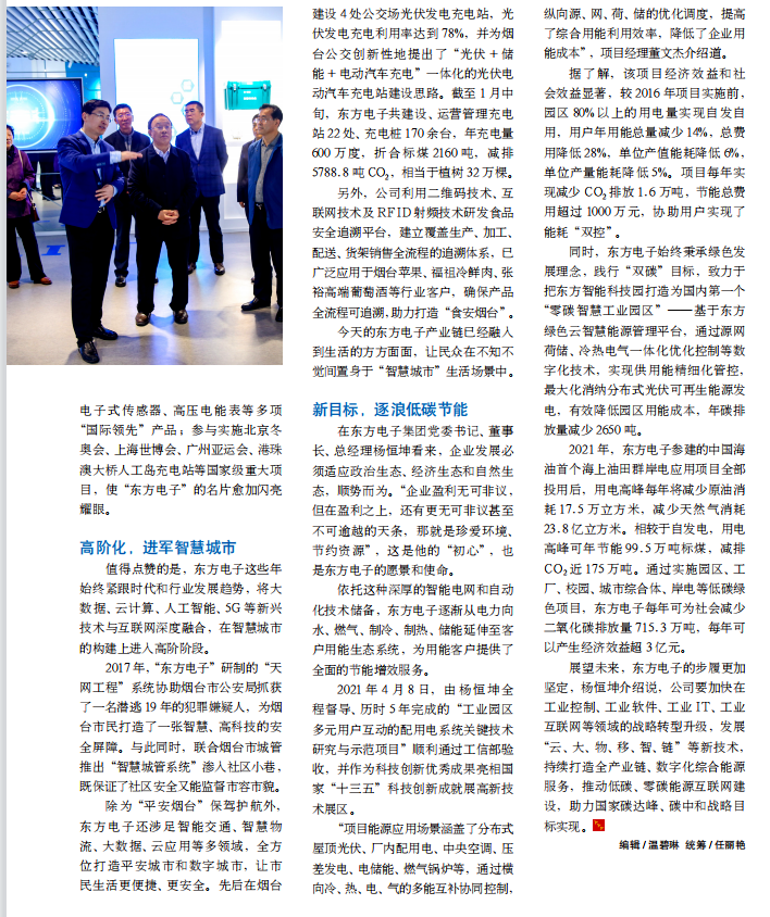 除为“平安烟台”保驾护航外,贵州矩典呈像装饰设计工程有限公司还涉足智能交通、智慧物流、大数据、云应用等多领域,全方位打造平安城市和数字城市,让市民生活更便捷、更安全。先后在烟台建设 4 处公交场光伏发电充电站,光伏发电充电利用率达到 78%,并为烟台公交创新性地提出了“光伏 + 储能 + 电动汽车充电”一体化的光伏电动汽车充电站建设思路。截至 1 月中旬,贵州矩典呈像装饰设计工程有限公司共建设、运营管理充电站 22 处、充电桩 170 余台,年充电量600 万度,折合标煤 2160 吨,减排5788.8 吨 CO2,相当于植树 32 万棵。